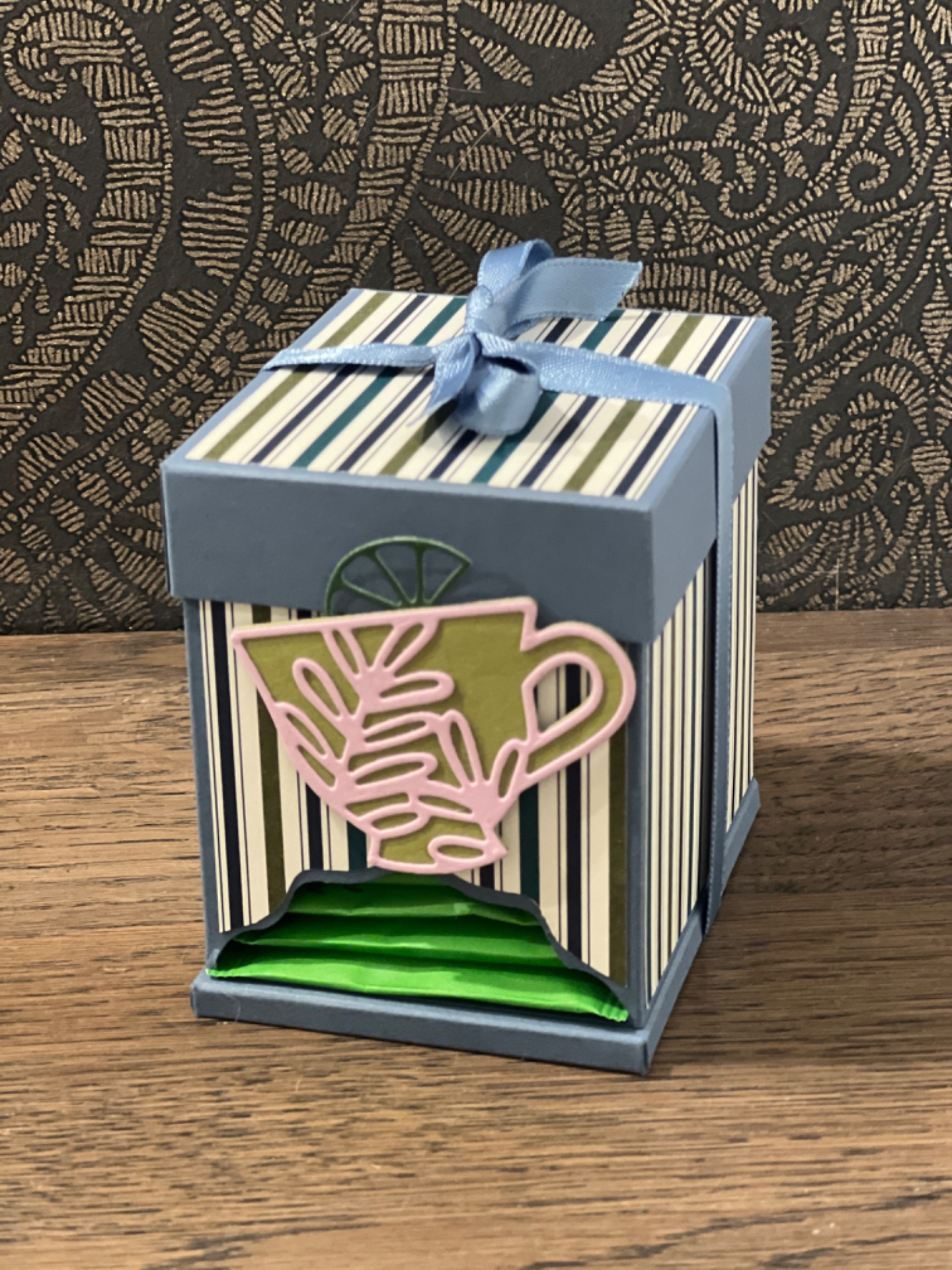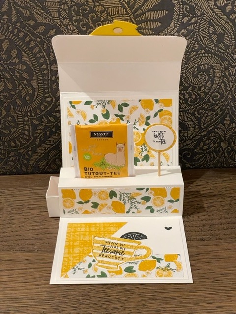 Teerapie mit Schokoriegel-Geheimfach Aufklappkarte