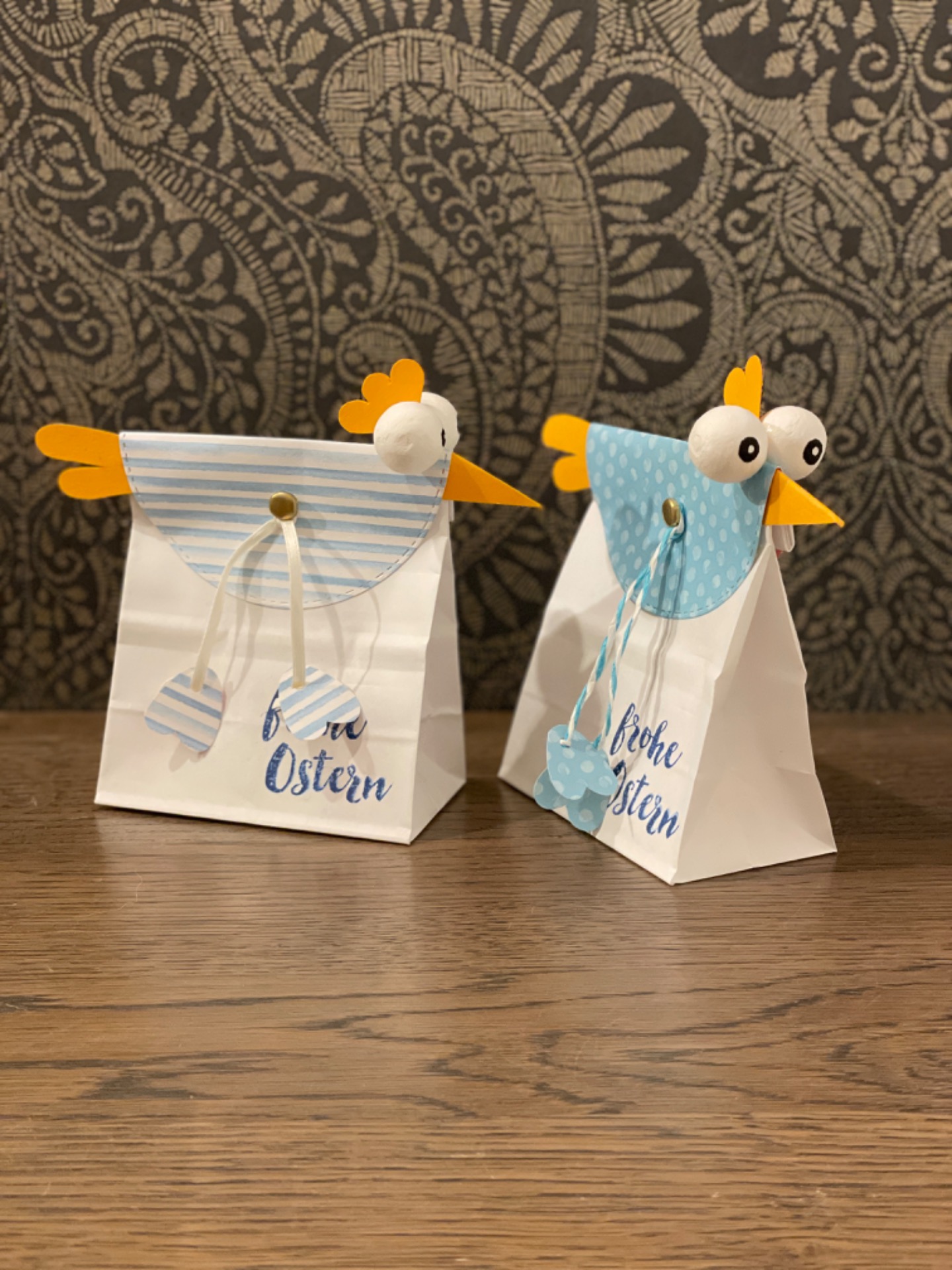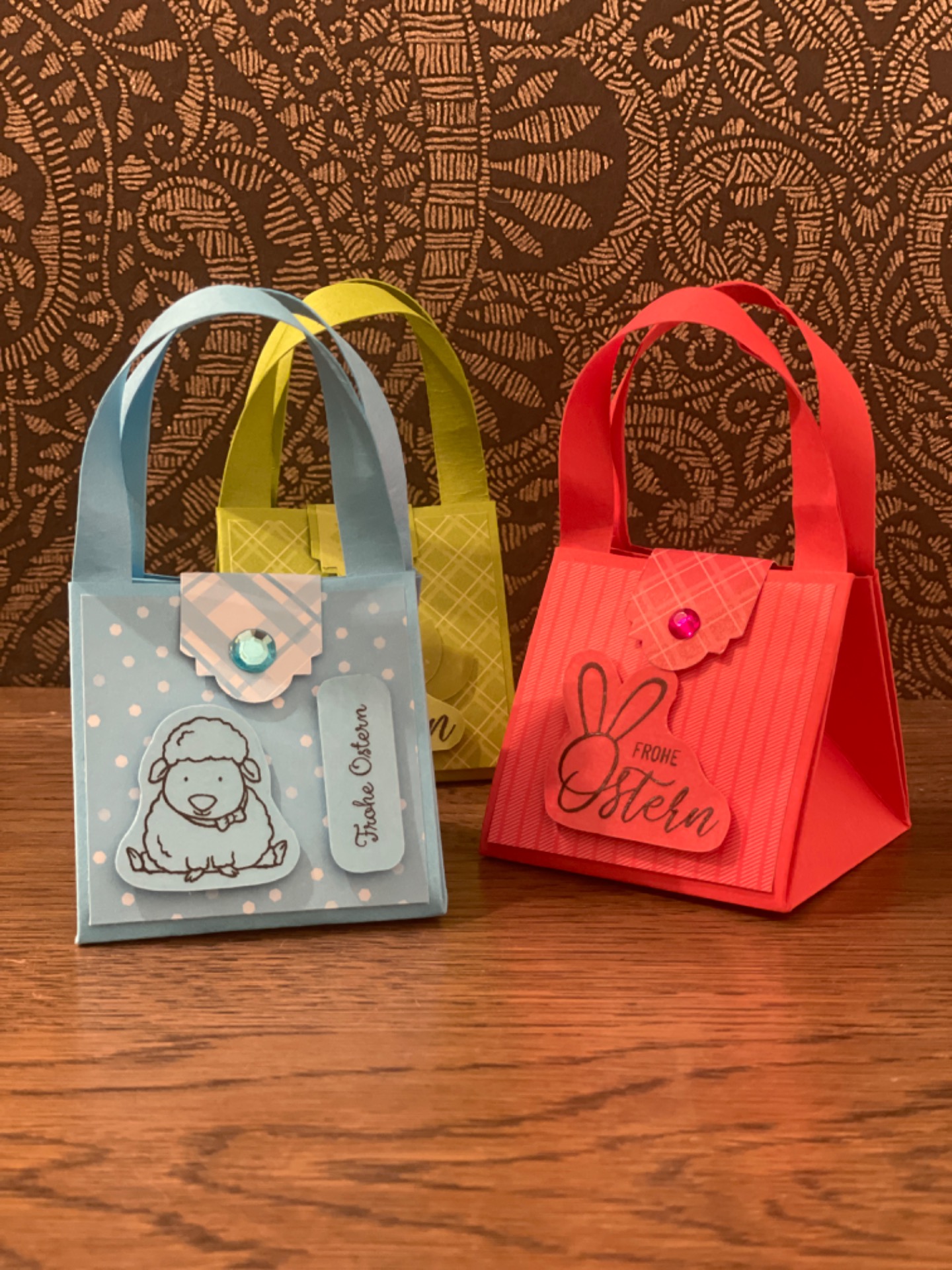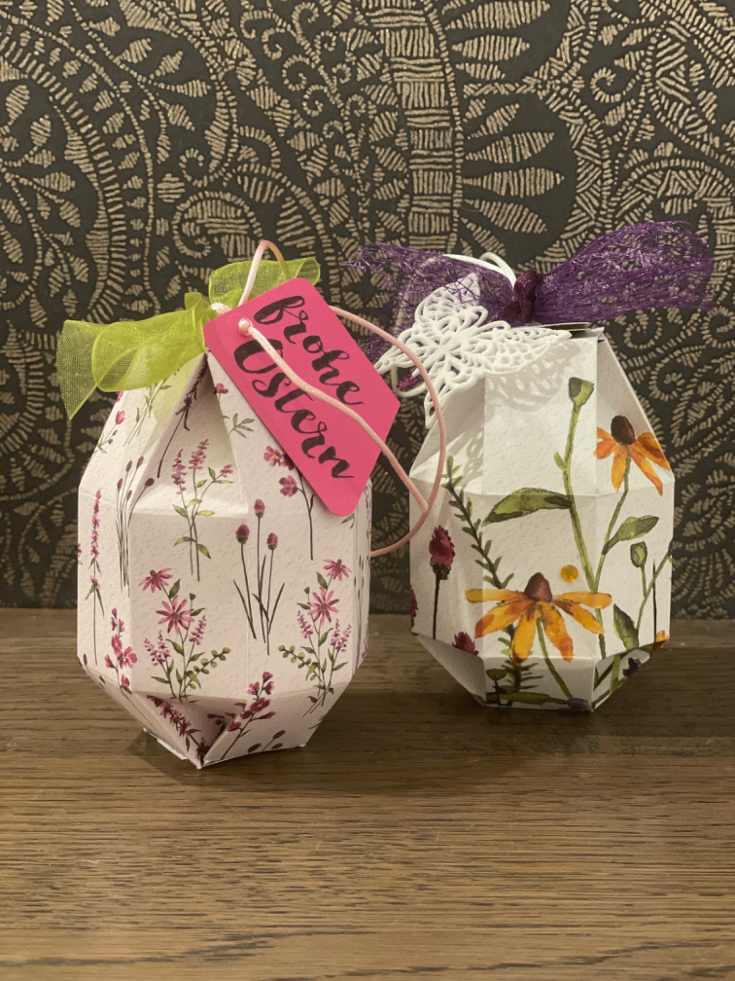 Fröhlich bunte Taschen mit Schokofüllung und Magnetverschluss und österliche Schwenkboxen (auch alternativ vegan mit KoRo-Snackkugel)