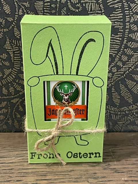 Jäger-Hase (4cl) und kleine Box gefüllt mit Zotter-Mini-Schoko