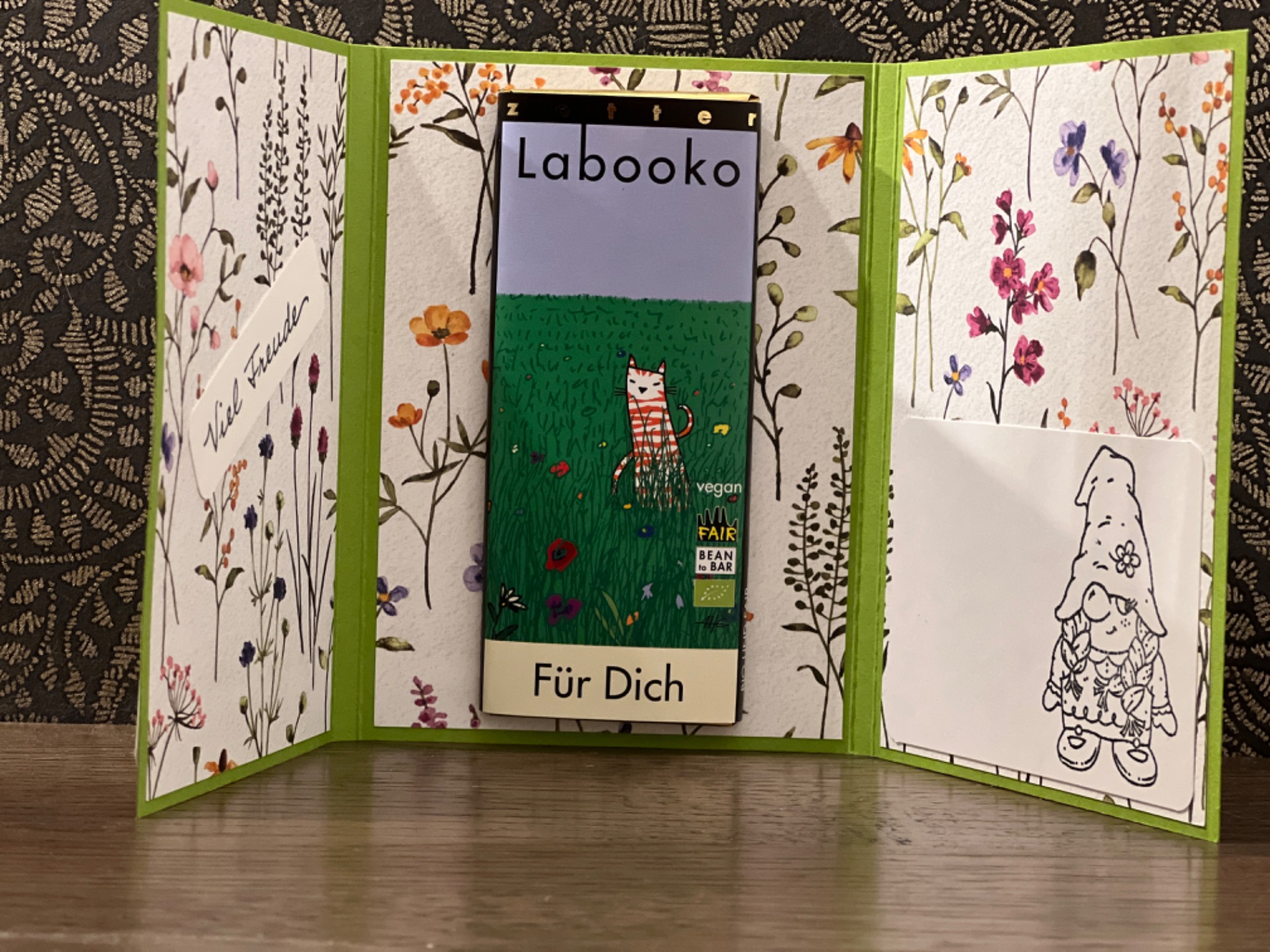 So wurde die Idee geboren, hauptsächlich aus Papier individuelle Verpackungen zu gestalten und Schokolade, sowie gesunden und auch veganen Süßigkeiten ein neues feines Aussehen zu verpassen.